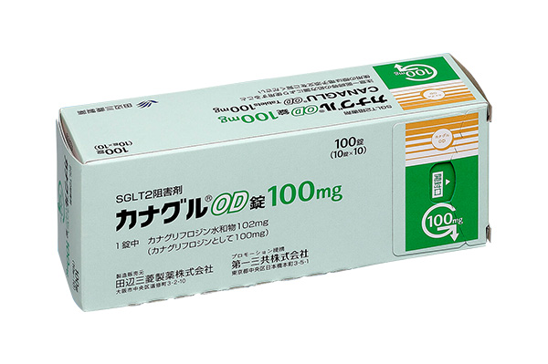 カナグルは、カナグリフロジンを有効成分とする**SGLT2阻害薬(経口薬)**です。腎臓の近位尿細管にあるSGLT2(ナトリウム‐グルコース共輸送体2)を阻害し、腎臓でのブドウ糖再吸収を抑えることで、余分な糖を尿として排泄し、血糖を下げる作用を示します。